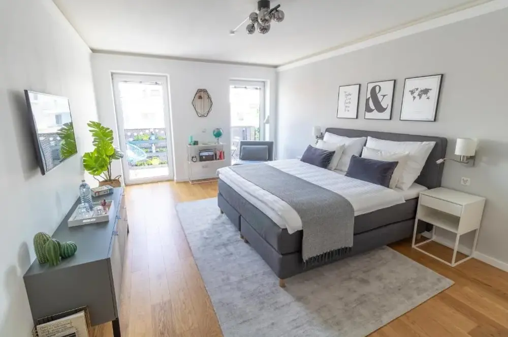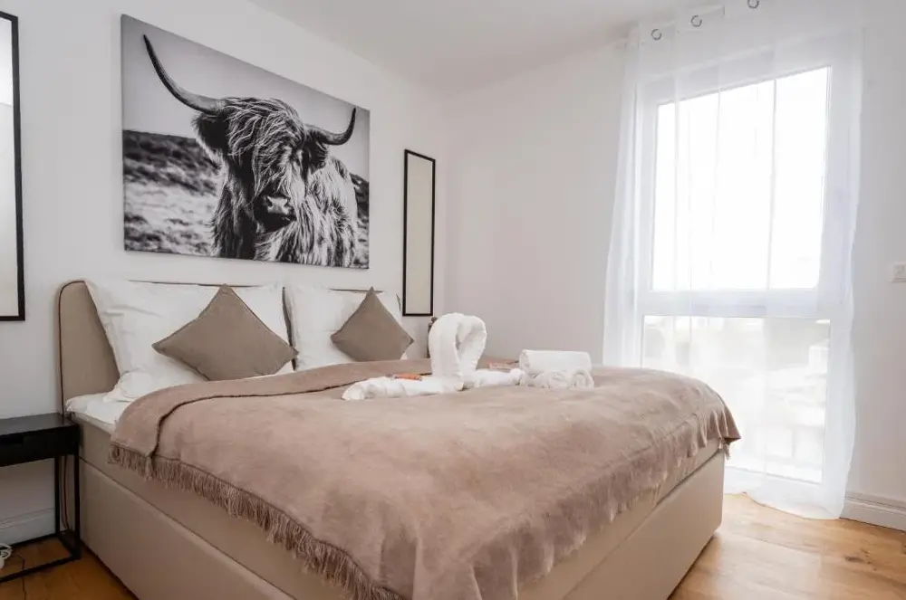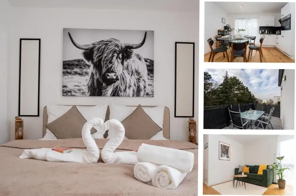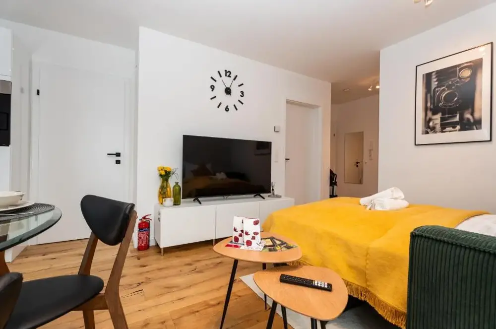 More information about Austria Center - Wien an der DonauThe Business Home Vienna offers a stylish apartment located at 7 Töpfelgasse Top 3, 1140 Wien-Penzing, providing convenient access to key attractions across central Vienna. The unit features a spacious bedroom with ample space for guests, along with a fully equipped kitchen including appliances and direct access to an outdoor terrace where meals can be enjoyed.